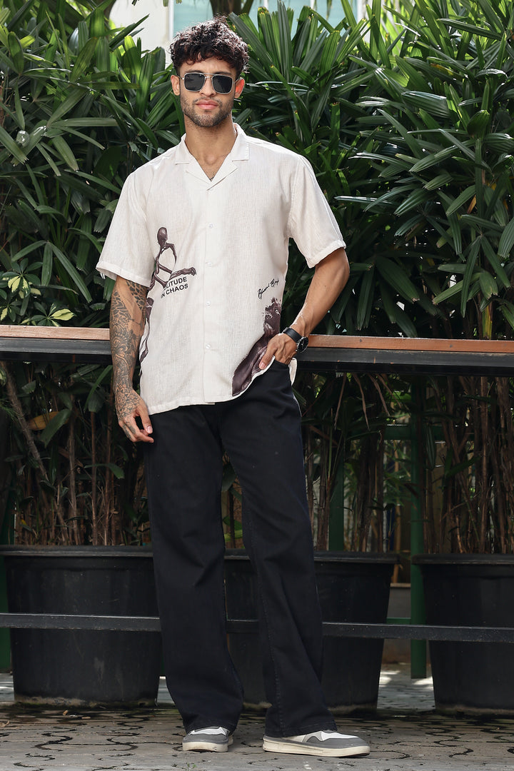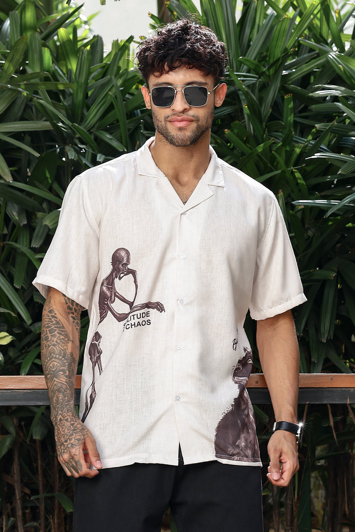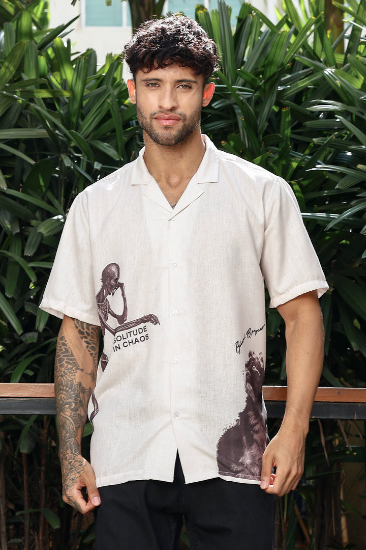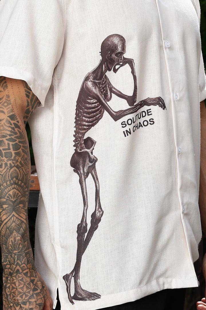 New Sparrow Cream With Solitude Tatoo Print Shirts