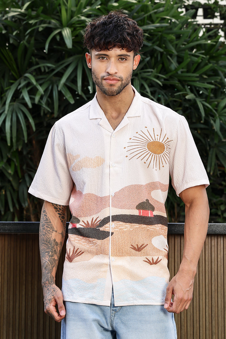 Say hello to statement florals. This lycra base layered shirt with abstract oversized blooms gives your vacation vibe a smart twist. Soft to the touch, but built with structure, it looks good even when worn untucked. For vacations, staycations, or spontaneous beer runs.