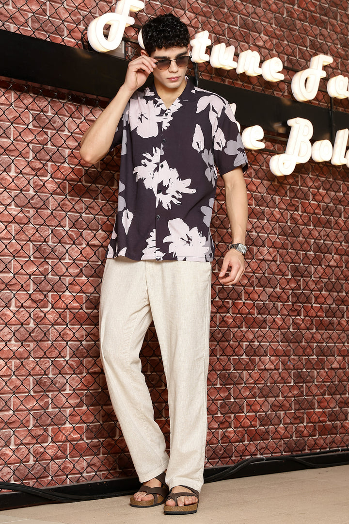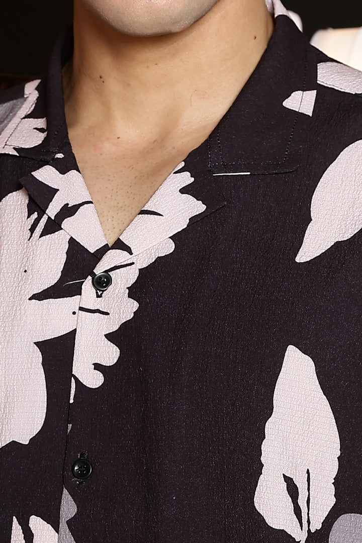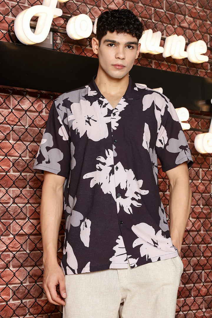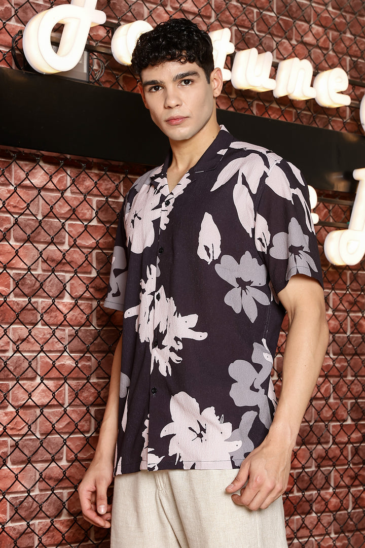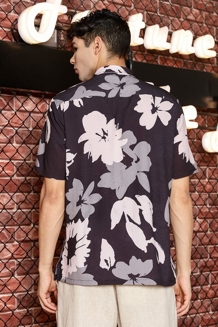 Sparrow Black With Multicolour Flower Print Shirts