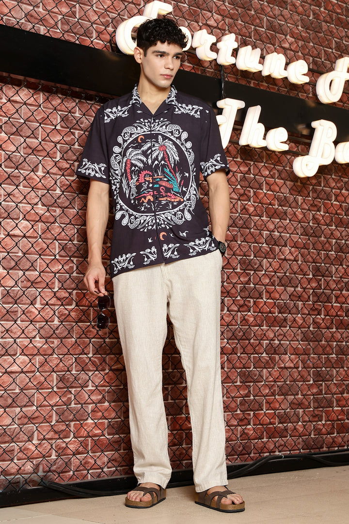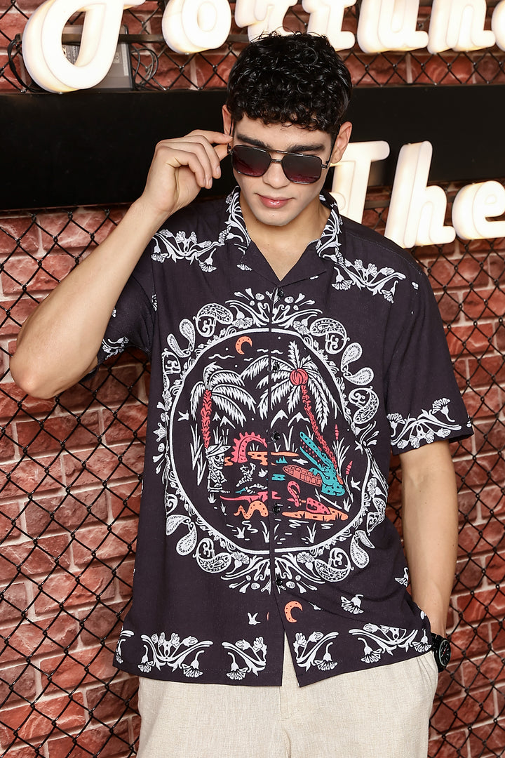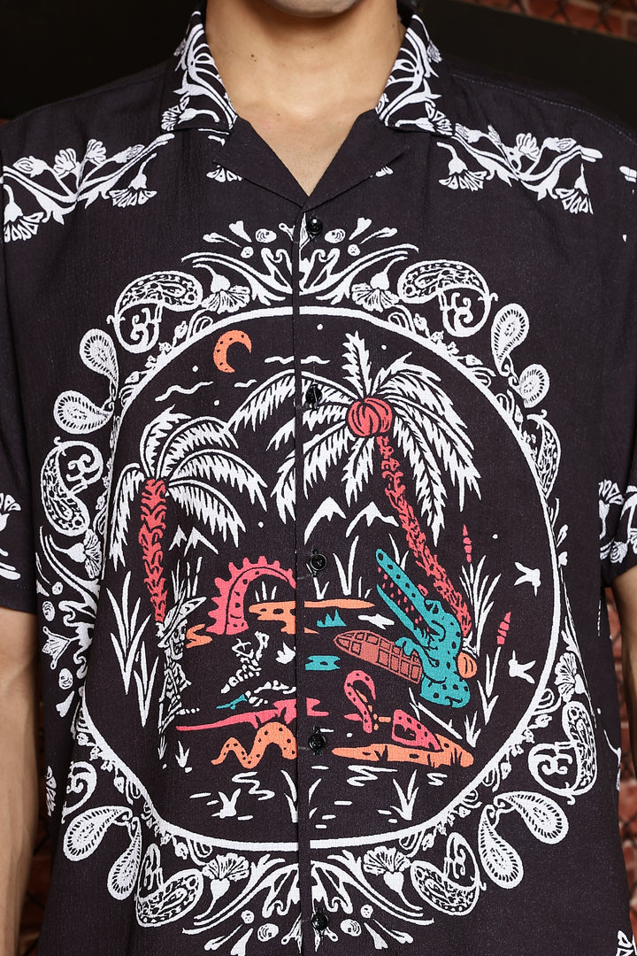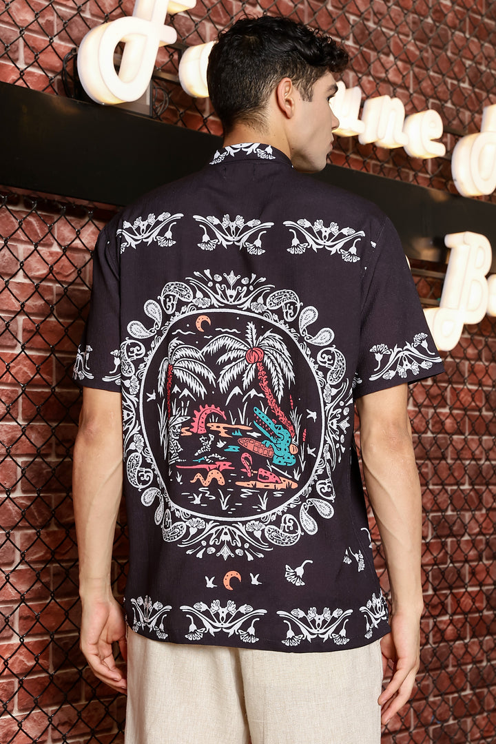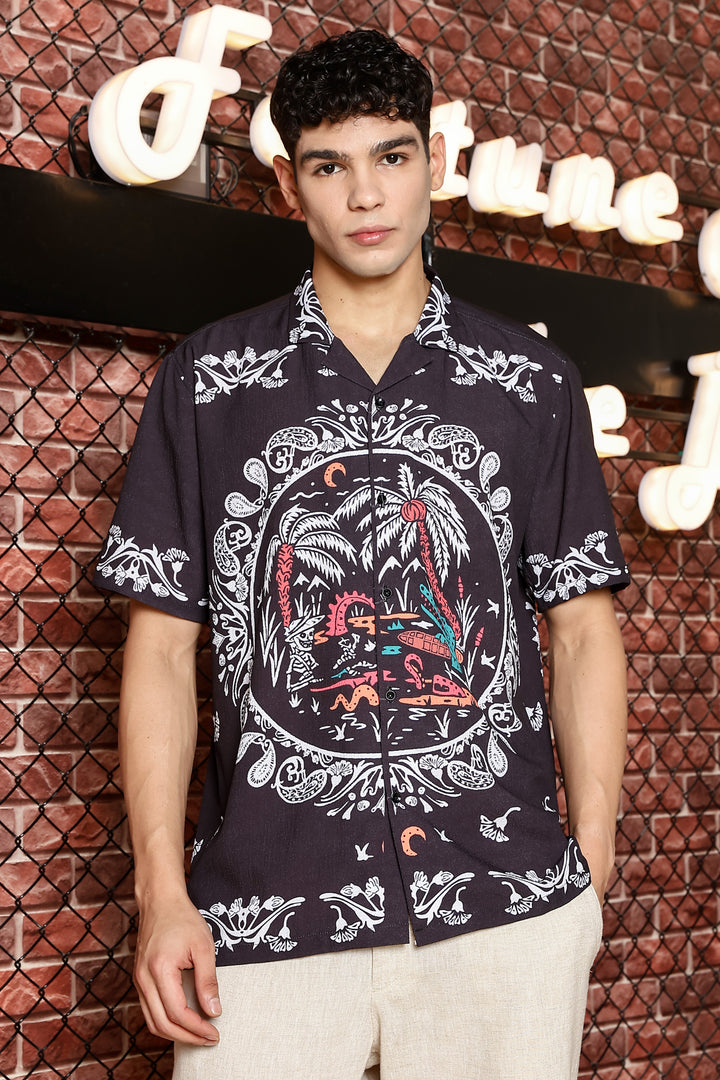 Sparrow Black With White Kerala Print Shirts
