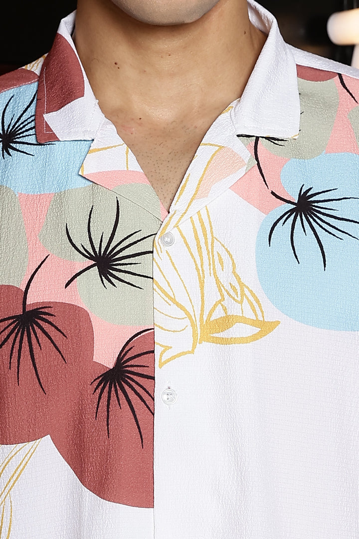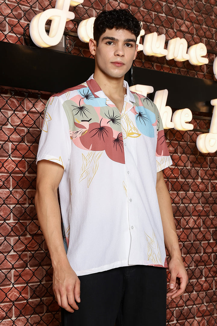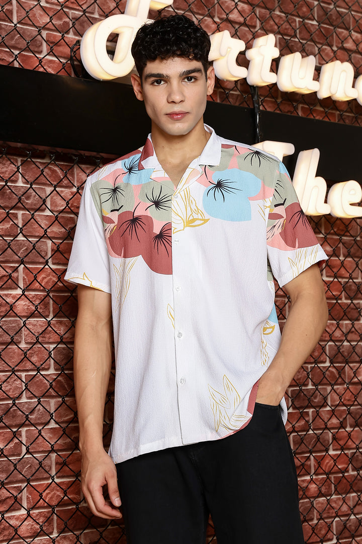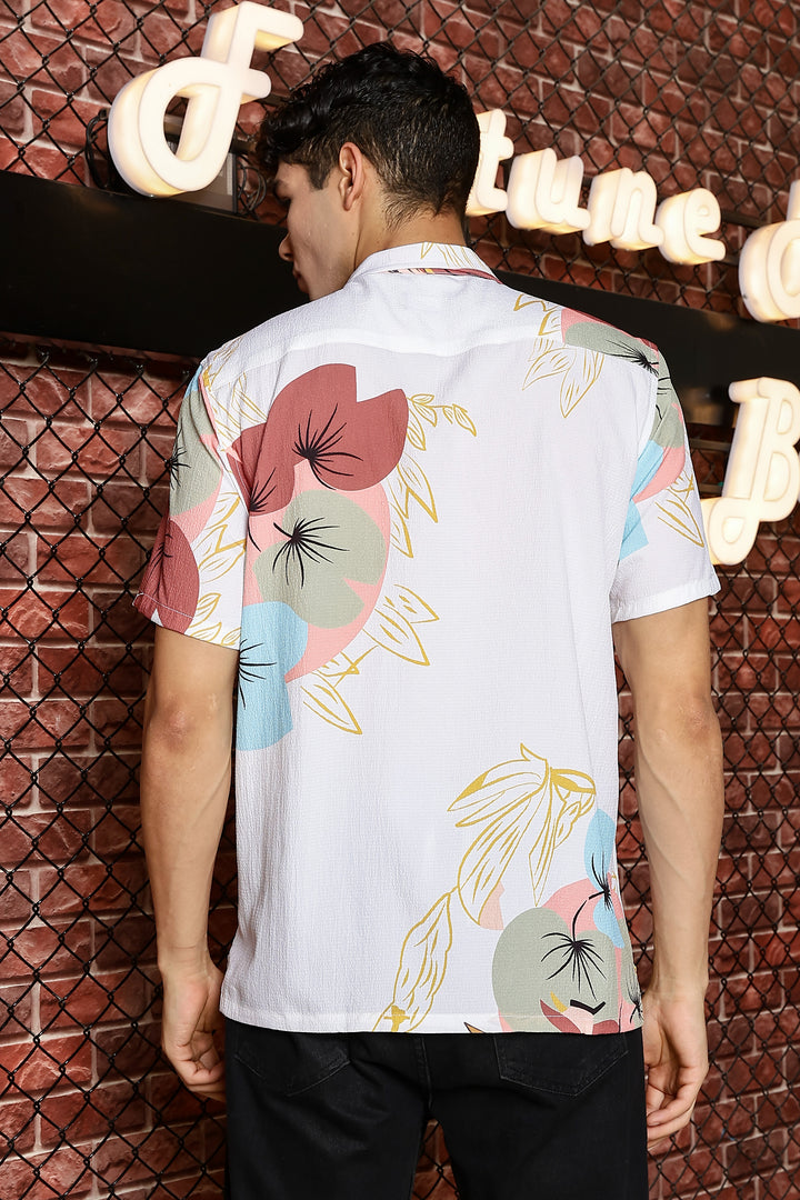 Sparrow White With Multicolour Flower Print Shirts For Men