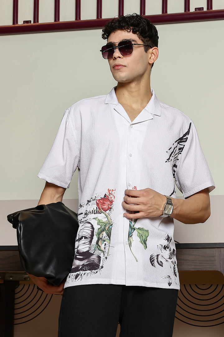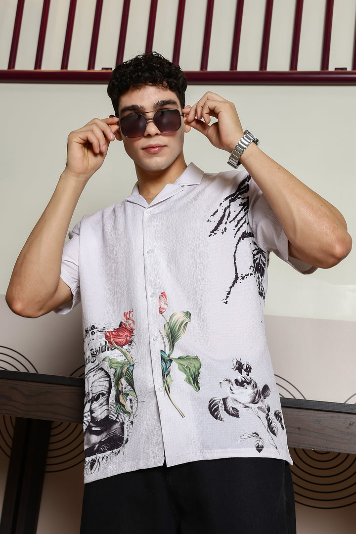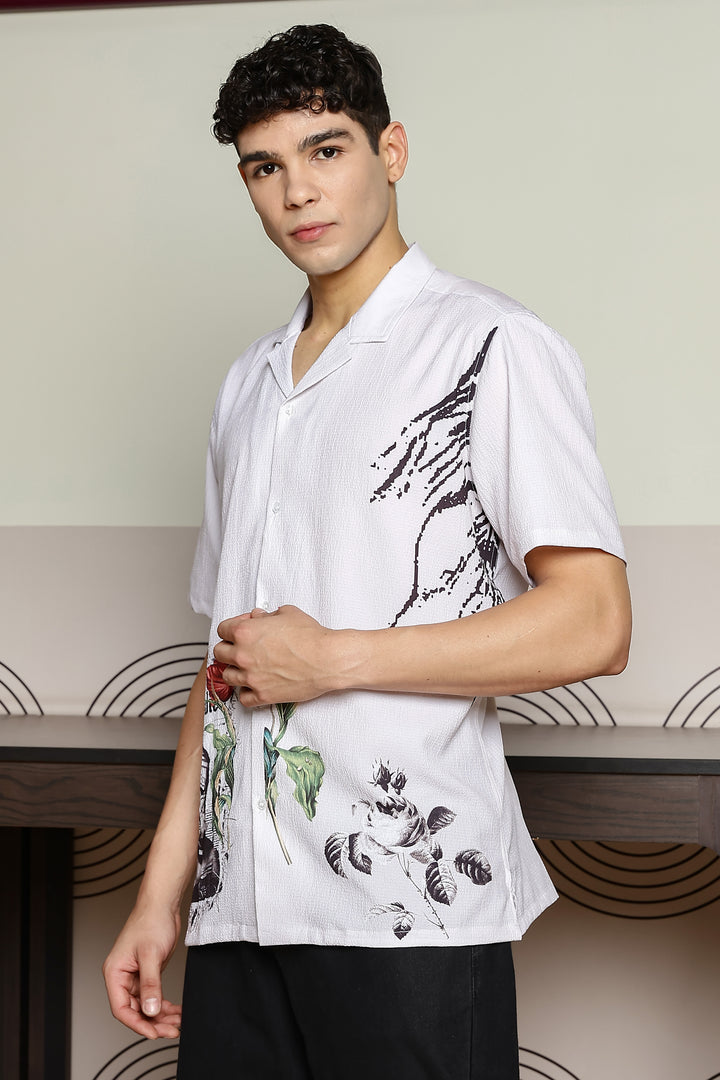 Say hello to statement florals. This lycra base layered shirt with abstract oversized blooms gives your vacation vibe a smart twist. Soft to the touch, but built with structure, it looks good even when worn untucked. For vacations, staycations, or spontaneous beer runs.