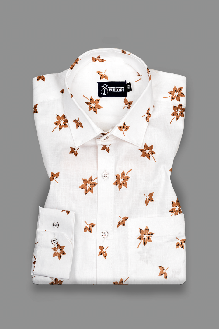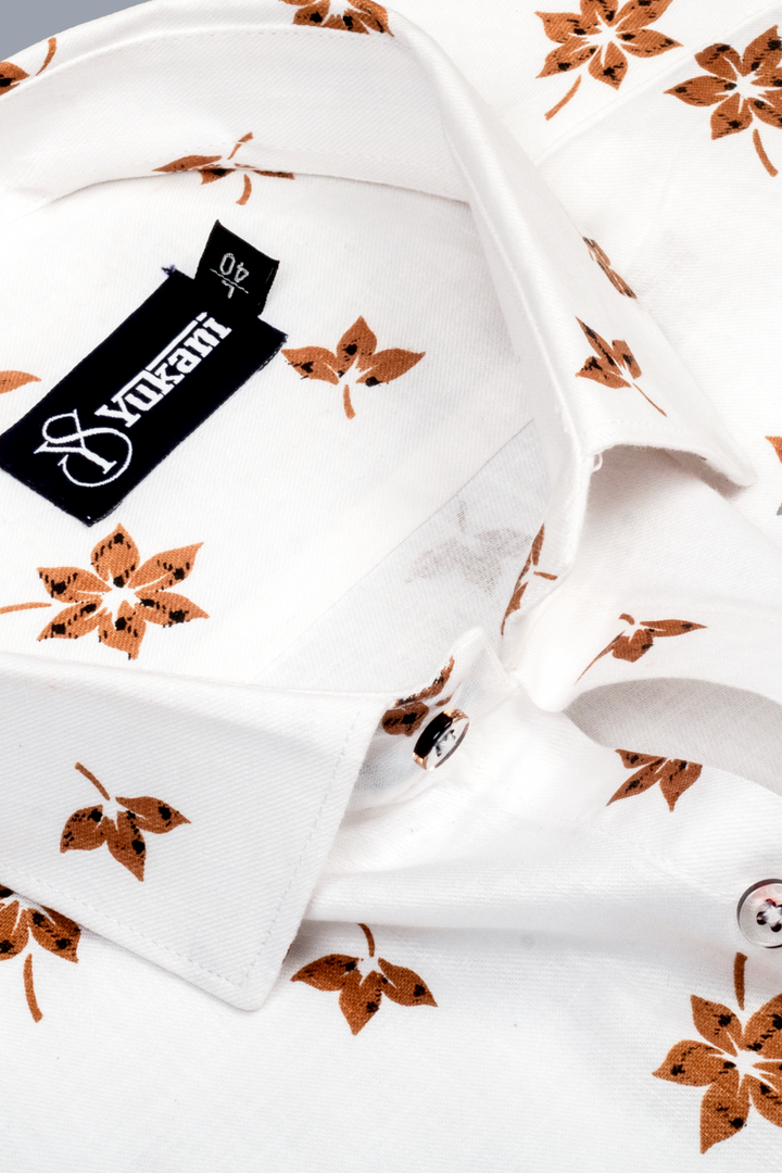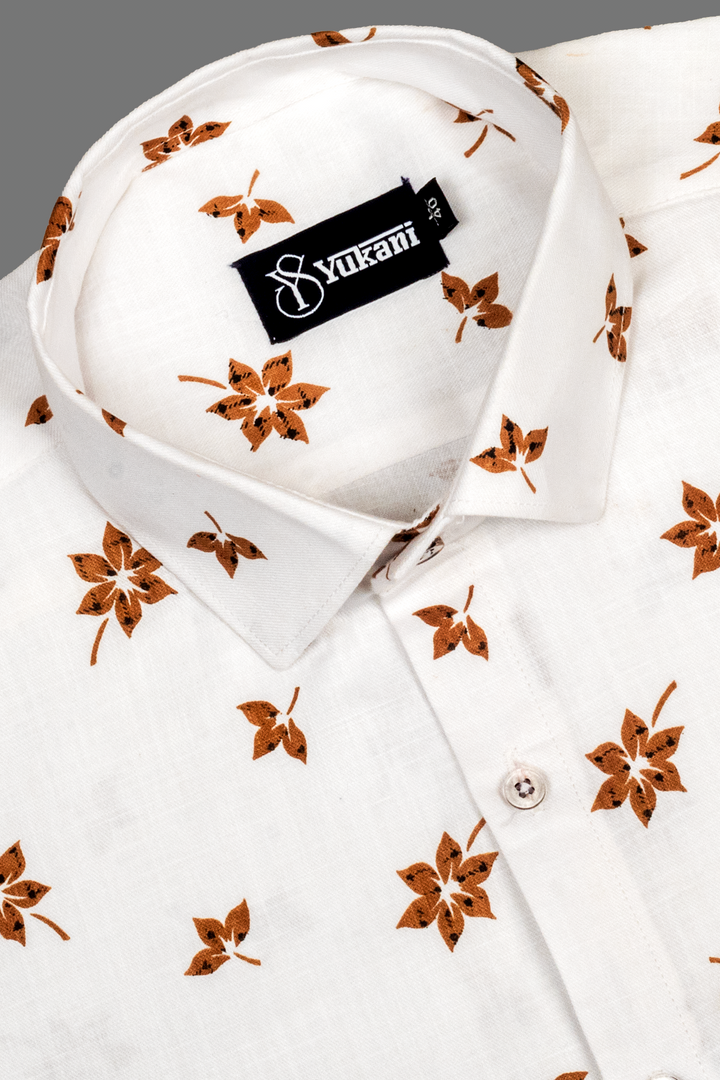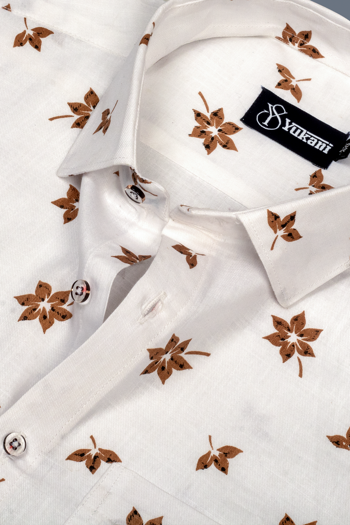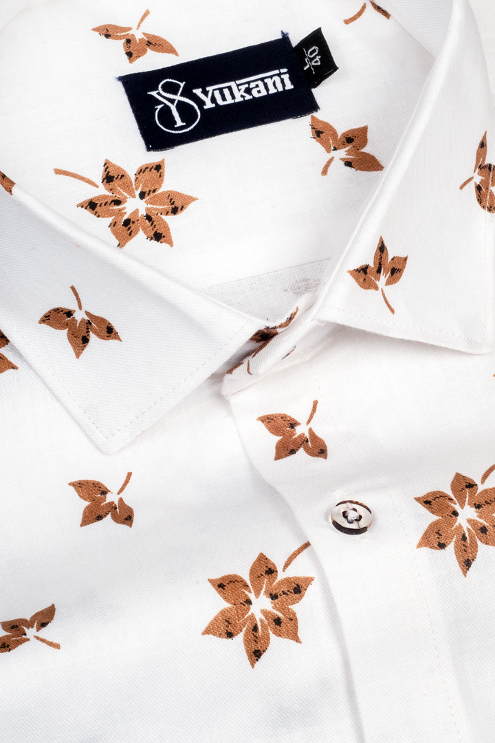 Turkey Linen White With Brown Flower Print Shirts